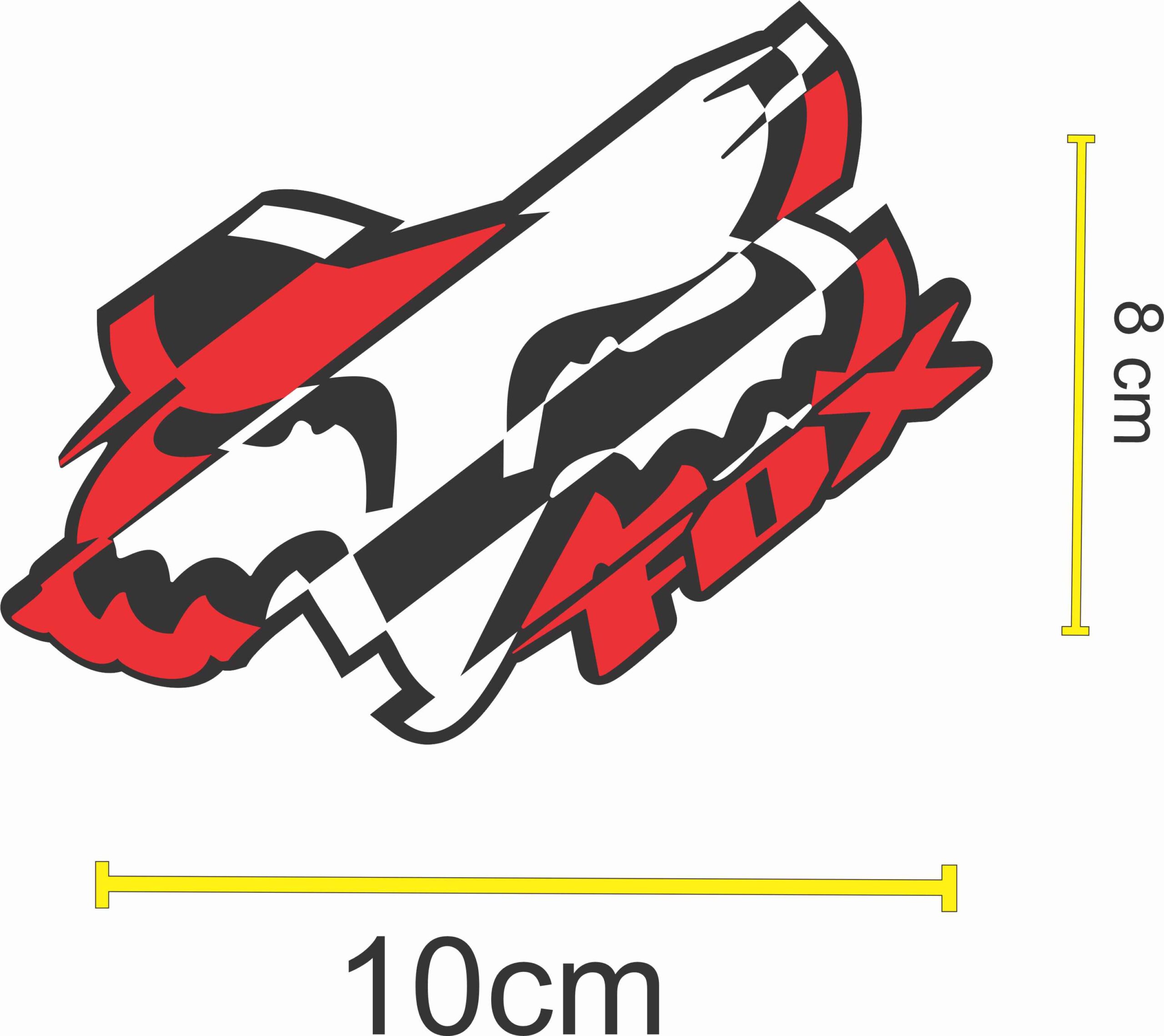 Sticker FOX Racing tamaño 10 x 7 cm, ideal para personalizar autos, motos, cascos, notebooks, herramientas o cualquier superficie lisa.